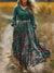 Vintage Art Print V-Neck Button Pocket Cotton Dress