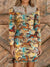 Women's Western Art Print Lace Trimmed Vintage Long Sleeves Cotton Dress