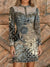 Women's Western Art Print Lace Trimmed Vintage Long Sleeves Cotton Dress