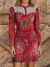 Women's Western Art Print Lace Trimmed Vintage Long Sleeves Cotton Dress