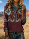 Aztec Print Patchwork Denim SweaterAztec Print Patchwork Denim Sweater