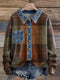 Brown Aztec Gradient Print Unisex Plush Thick Long-sleeved Sweater Cardigan Coat
