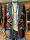 Leopard Flower Art Print Patchwork Denim Sweater Cardigan CoatLeopard Flower Art Print Patchwork Denim Sweater Cardigan Coat