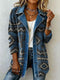 Retro Aztec Art Pattern Print Patchwork Denim Sweater Cardigan Coat