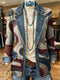 Retro Aztec Art Pattern Print Patchwork Denim Sweater Cardigan Coat