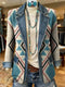 Retro Aztec Art Print Patchwork Denim Sweater Cardigan Coat