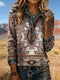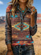 Retro Aztec Print Patchwork Denim Sweater Cardigan Coat