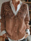 Retro Leather Embossing Pattern Print Buttoned V-neck Cardigan Sweater