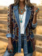 Retro Southwestern Art Print Patchwork Denim Sweater Cardigan Coat