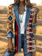 Simple Art Pattern Print Patchwork Denim Sweater Cardigan Coat