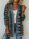 Simple Art Pattern Print Patchwork Denim Sweater Cardigan CoatSimple Art Pattern Print Patchwork Denim Sweater Cardigan Coat