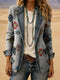 Turquoise Boho Floral Pattern Print Patchwork Denim Sweater Cardigan Coat