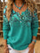 Turquoise Pattern Print Buttoned Cardigan Sweater