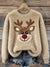 Women's Lovely Fuzzy Reindeer Art Print Cozy Plush Sweater