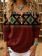 Women's Retro Aztec Art Print Henley Neck Sweater Top