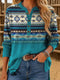 Women's Retro Aztec Pattern Print Casual Corduroy Top
