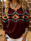 Women's Retro Red Aztec Art Print Henley Neck Sweater