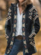 Women's Vintage Aztec Print Henley Neck Sweater Top