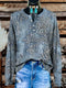 Women's Vintage Aztec Print Henley Neck Sweater Top