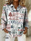 Women's Christmas Text Art Pattern Print Casual Cotton Shirt