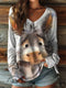 100% Cotton🍃Vintage Art Print Casual V-neck Long Sleeve T-shirt