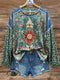 Vintage Ethnic Art Print Long-sleeved Round Neck Top