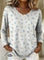Women's Floral Print Casual V-Neck Long-Sleeve T-Shirt