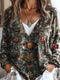 100% Cotton🍃Women's Vintage Brown Print Casual V-neck Long Sleeve T-shirt