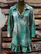 Vintage Paisley Print Casual Lapel Ruffled Denim Dress