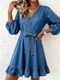 Women's Retro Flared Sleeve Mid-Length Sleeve Pocket Denim DressWomen's Retro Flared Sleeve Mid-Length Sleeve Pocket Denim Dress