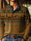 Men's Vintage Western Waffle Art Print Casual Henley Top