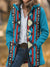Vintage Blue Aztec Unisex Plush Thick Long-Sleeved Cardigan Coat