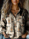 Women's Brown Flower Print Casual Long Sleeve Comfortable Cotton Shirt