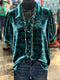 Women's Retro Floral Print Short Sleeve Velvet Shirt
