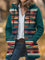 Green Stripes Aztec Unisex Plush Thick Long-Sleeved Cardigan Coat