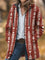 Red Aztec Print Unisex Plush Thick Long-Sleeved Cardigan Coat