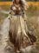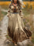Women's Aztec Print V-Neck Button Pocket Cotton Dress