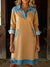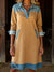 Women's Vintage Apricot Paneled Washed Denim Long Sleeve Dress