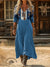 Women's Vintage Aztec Art Print Pocket Cotton V-neck Long-sleeve Dress