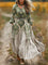 Women's Vintage Green Print V-neck Button Pocket Cotton Dress