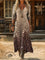 Women's Vintage Leopard Print Art Print Pocket Cotton V-neck Long-sleeve Dress