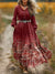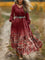 Women's Vintage Print V-neck Button Pocket Cotton Dress