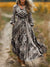 Women's Vintage Print V-neck Button Pocket Cotton Dress