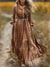 Women's Vintage Print V-neck Button Pocket Cotton Dress