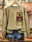 Vintage Art Christmas Print Casual Cotton Sweatshirt