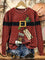 Vintage Christmas Art Print Buttoned Cardigan Sweater