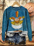 vintage Christmas art Print Casual Cotton Sweatshirt