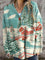 Vintage Snow Print Buttoned V-neck Cardigan Sweater