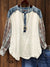 Women's Contrast Print Patchwork Denim Casual Cotton Linen Shirt