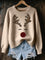 Women's Vintage Christmas Art Print Casual Pullover Sweater